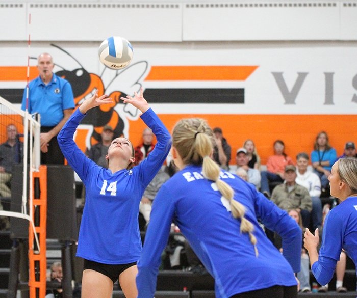 Annika Dunrud had a huge game from the floor for the Eagles as the senior finished with 17 kills to go along with nine digs. Alivia Preuss finished with eight kills, while Ellyana Ruther and Sawyer Anderson finished with five kills apiece. Chloe Costin finished with 19 assists, while Julie Seim chipped in with 14.