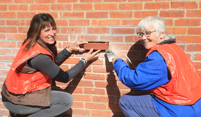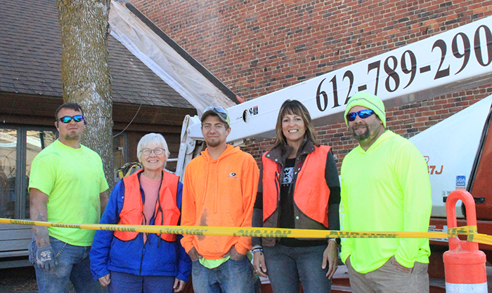 Representatives from the Cultural Center, including Teresa Muckala and Betsy Roder (below) were on hand last week to celebrate the start of the first phase of repairs at the Cultural Center in New York Mills. The building in the heart of town dates back 140 years.