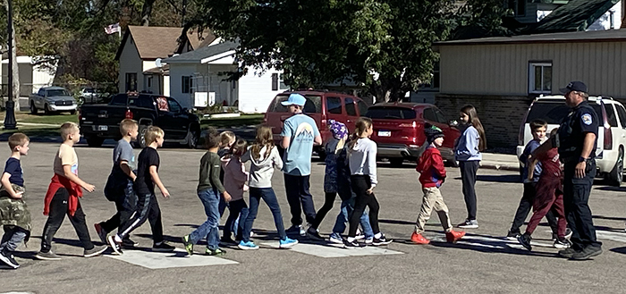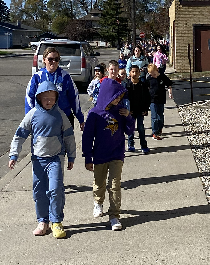 New York Mills students observed National Walk to School Day last Wednesday, Oct. 8 and made a trek around town before making their way back to school.