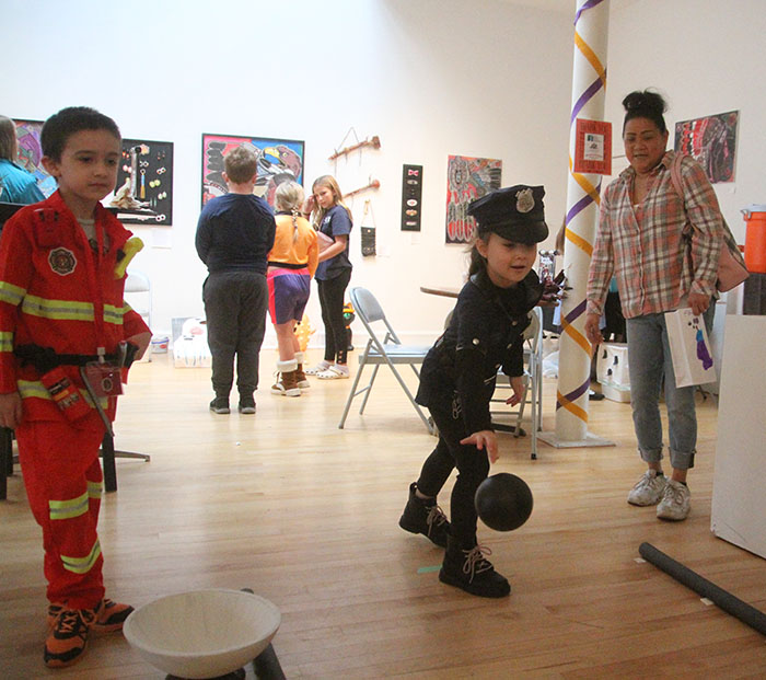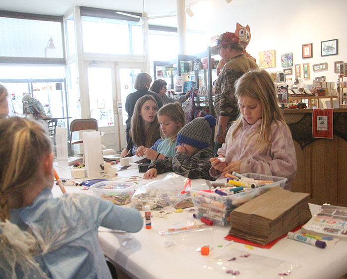 Ellena Moreland watches as her ball rolls toward a set a bowling pins at the Cultural Center on Saturday afternoon. The game was just one of a number of activities set up inside the Cultural Center on Saturday as part of the annual community Halloween party. The day also included a number of treats, arts and crafts activities (right) and plenty of time for children to earn candy in their Halloween costumes. For more pictures and information from last week’s Halloween party, check out page 2.