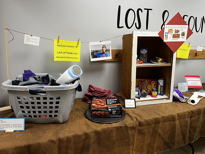 People who attended the Love INC Fall Fundraiser on October 12 got a sobering look at the hardships many people in our communities face. Attendees walked through a door frame to which an eviction notice was attached. They then looked at facts and scenarios depicting the economic challenges people face: no money for groceries and household necessities, a work-related accident for which health insurance denied coverage, an overwhelming list of needed school supplies and equipment with no money to purchase them for children going to school, and more. Many attendees commented on the impact that seeing these displays had on them. They felt shock, concern, and a need to do something to help people who experience these things. In this way, Love INC board members felt they were successful in meeting their goal of helping attendees understand the hardships experienced by those who contact Love INC for help.