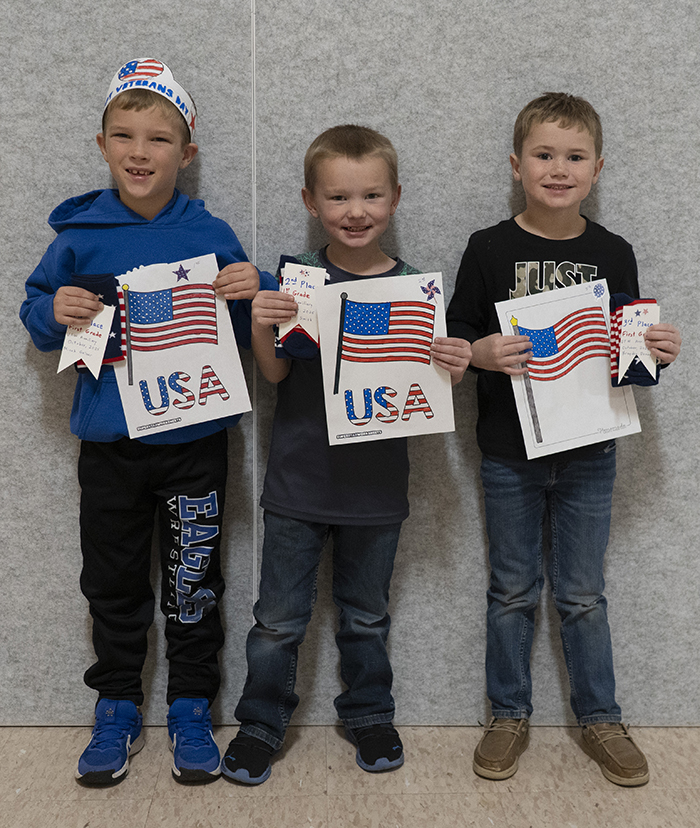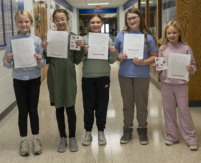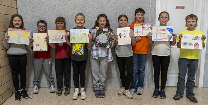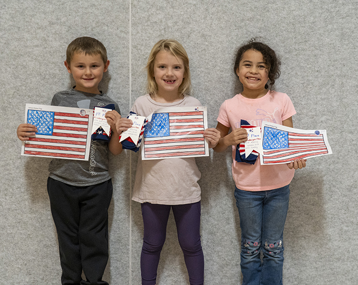 New York Mills students in kindergarten, first, fourth, fifth and sixth grades proudly took part in this fall’s VFW Patriotism Contest. The youngest students (kindergarten and first grade) showed their creativity through coloring, fourth graders illustrated their patriotic spirit with original drawings, and fifth and sixth graders expressed their thoughts through essays. Winners are listed in order of their placement, except for sixth grade, which had one first place finisher while the remaining students placed second.