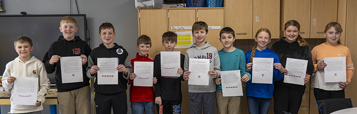 Fourth grade: Jaclynn Wilhelmi, Setler Smith, Nathan Kopveiler, Blake Vaughan, Emily Dittmann, Cecilia Olson, Porter Hendrickx, Aubree Jorden,and Ren Hoefs (top).