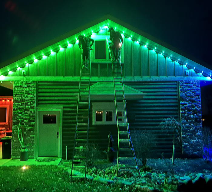 “If you have pre-existing lights, we’ll come out and install them, depending on the layout of the house and height of the soffit,” said Larson. “If you want Christmas lights or permanent lighting, we’ll come out and install that too, we give you a rough quote and estimates are free within about 30 minutes of here.