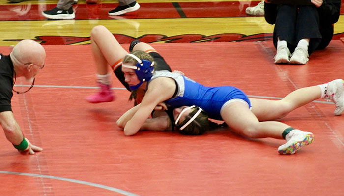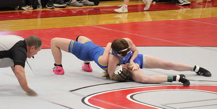 136 – Addison Hillukka (26-14) So., WDC over Makya Oehrlein (14-11) Fr., NYM (F 3:01), Makya Oehrlein (14-11) Fr., NYM over Ella Mickelson (7-9) So., WCAA (F 3:23), Makya Oehrlein (14-11) Fr., NYM over Annabella Holmes (9-12) Jr., EDPR (F 1:24)