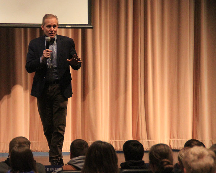 Minnesota Secretary of State of State Steve Simon visted the NY Mills School last week and talked about his role at the state level, elections, and answered questions from the student body.