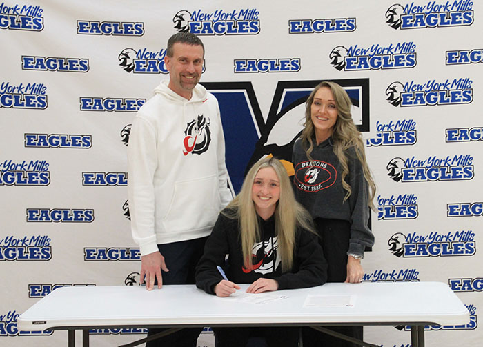 Annika Dunrud was surrounded by her family and friends on Wednesday as she signed her National Letter of Intent to play basketball at Minnesota State University-Moorhead next year. The New York Mills senior is the daughter of Bryan and Cassie Dunrud and scored her 1,000th career point for the Eagles earlier this season.